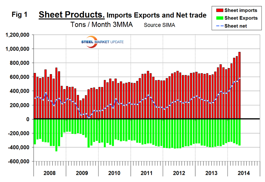 Net Imports of Sheet Products through May 2014
