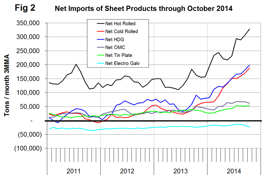 Supply, Mill Shipments and Net Imports of Sheet Products through October 2014