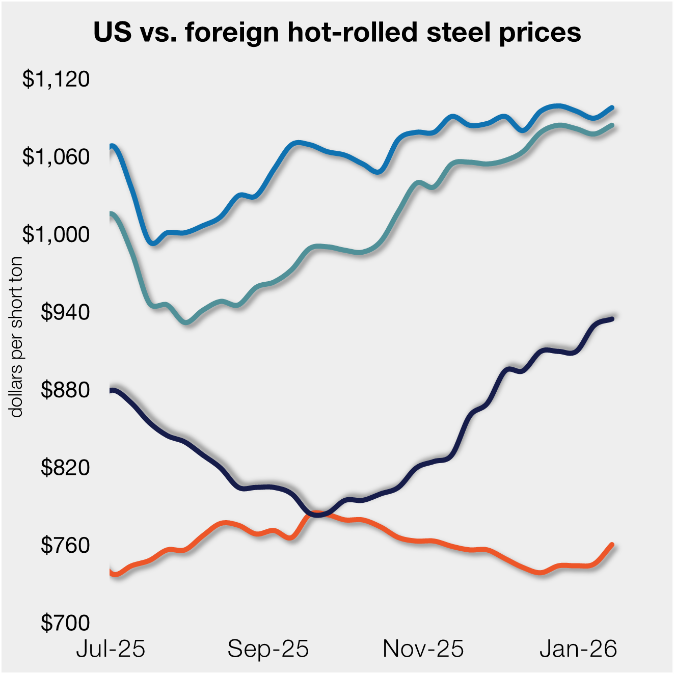 He pointed to two reasons for the decline. First, the flows of obsolete scrap into dealers’ yards have risen as expected now that spring is here. At the same time, many dealers still owe a lot of scrap to some mills because of the difficulty getting enough railcars and trucks to deliver the scrap they sold last month.