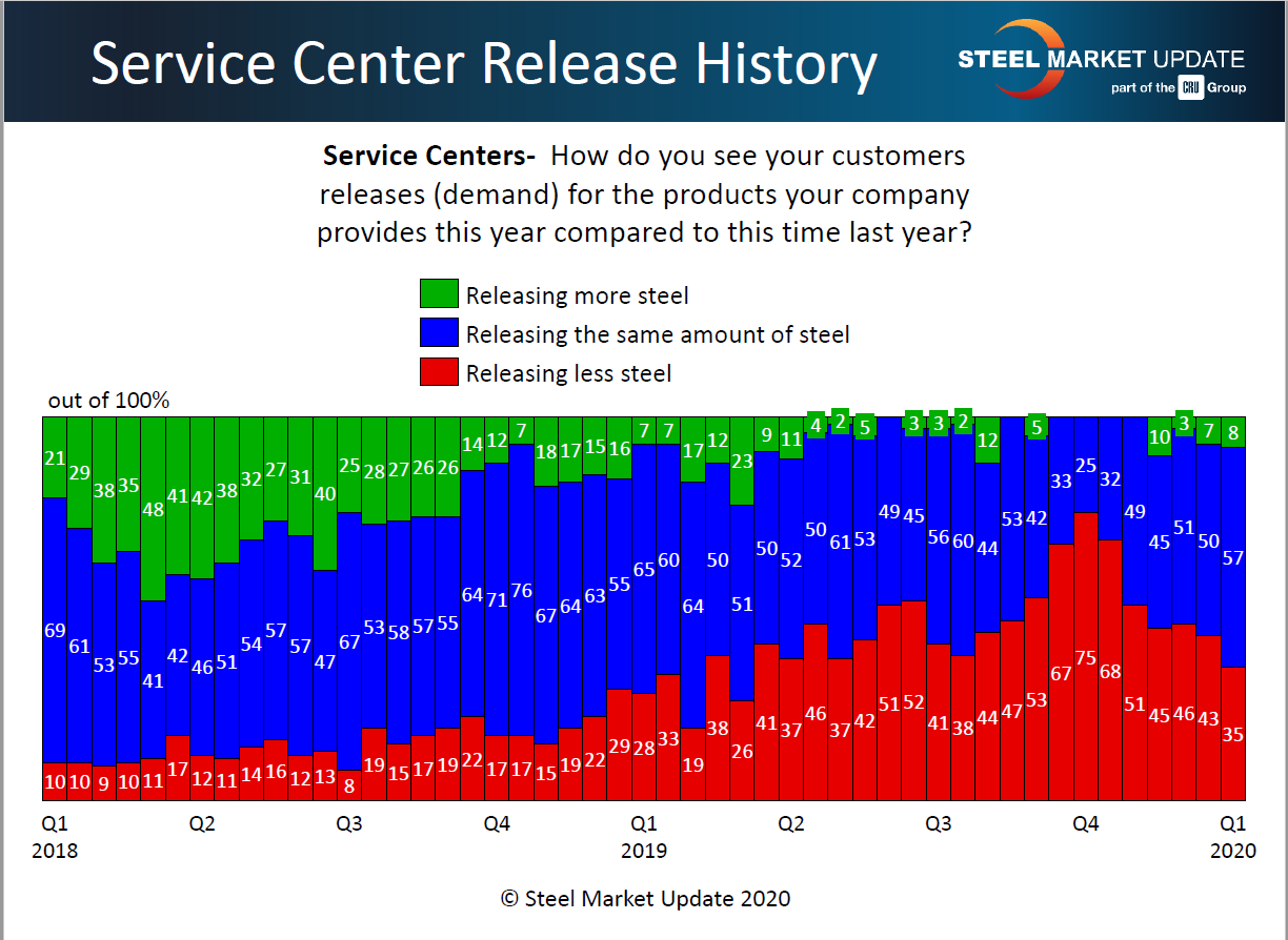 Knowing what we do now about the year 2019, it is quite evident there were issues with the release of inventories out of the steel service centers over the course of the year. The worse time was in late third and early fourth quarters. As we look at the data now it does appear to be improving. I am watching the green bars on this graphic as it will give us more insights as to when demand will be even more robust (like what we were collecting in the first, second and third quarters of 2018.