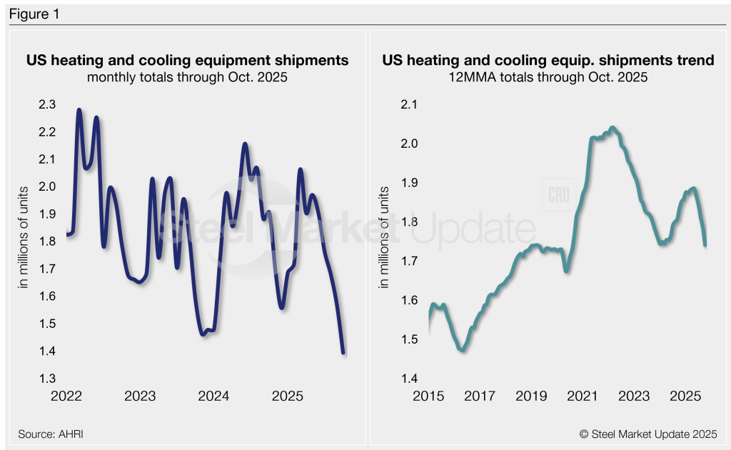 HVAC equipment shipments down through October