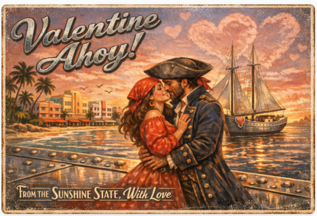 But maybe some of you have decided to stay an extra day in Florida with someone special. After all, Saturday is Valentine’s Day. I asked AI to incorporate love as well. The results are here: