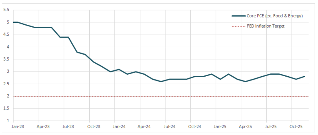 Over the coming months, an awareness of how norms in labor market data have changed will be vital, because stickiness in inflation (see chart below) is unlikely to shift in a way that would cause the Fed to be confident that prices are anchored to their 2% target, especially given the fact that today’s November Core PCE release showed an increase to 2.8%, up from 2.7% in October.