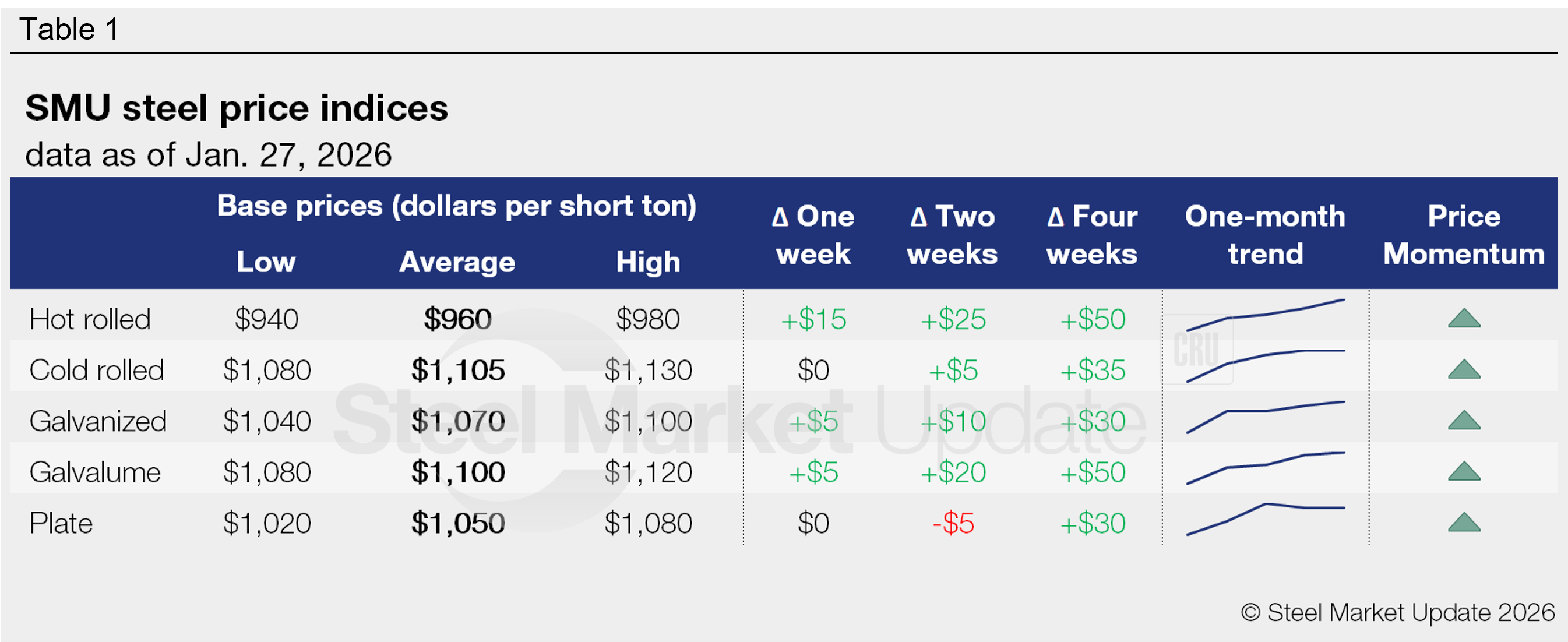 Our plate index held at $1,050/st, just $5/st below the five-month high we saw in mid-January.