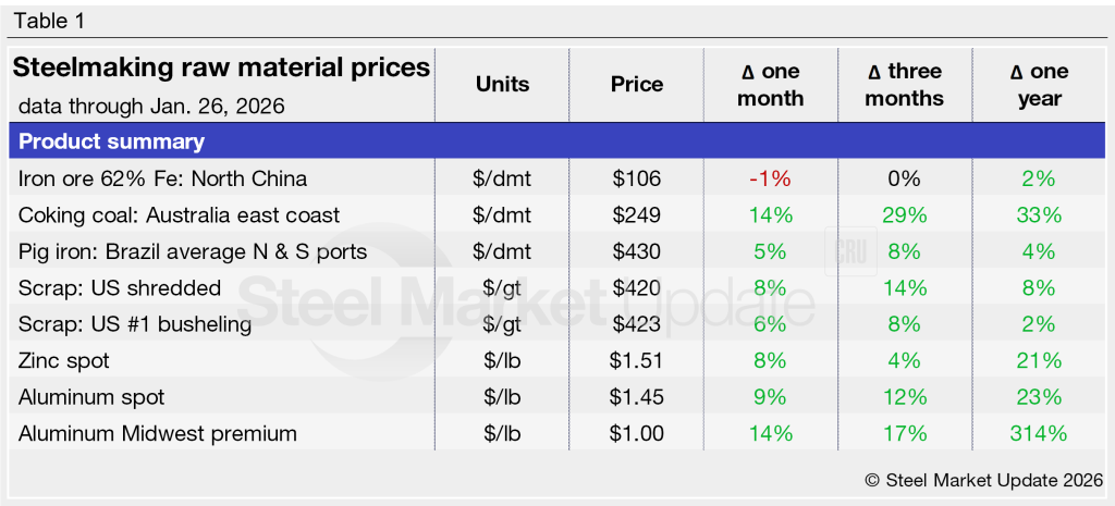 Steelmaking raw material prices increase through January