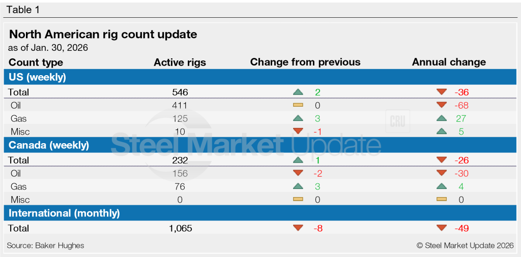 The Baker Hughes rig count is significant for the steel industry because it is a leading indicator of oil country tubular goods (OCTG) demand, a key end market for steel sheet.