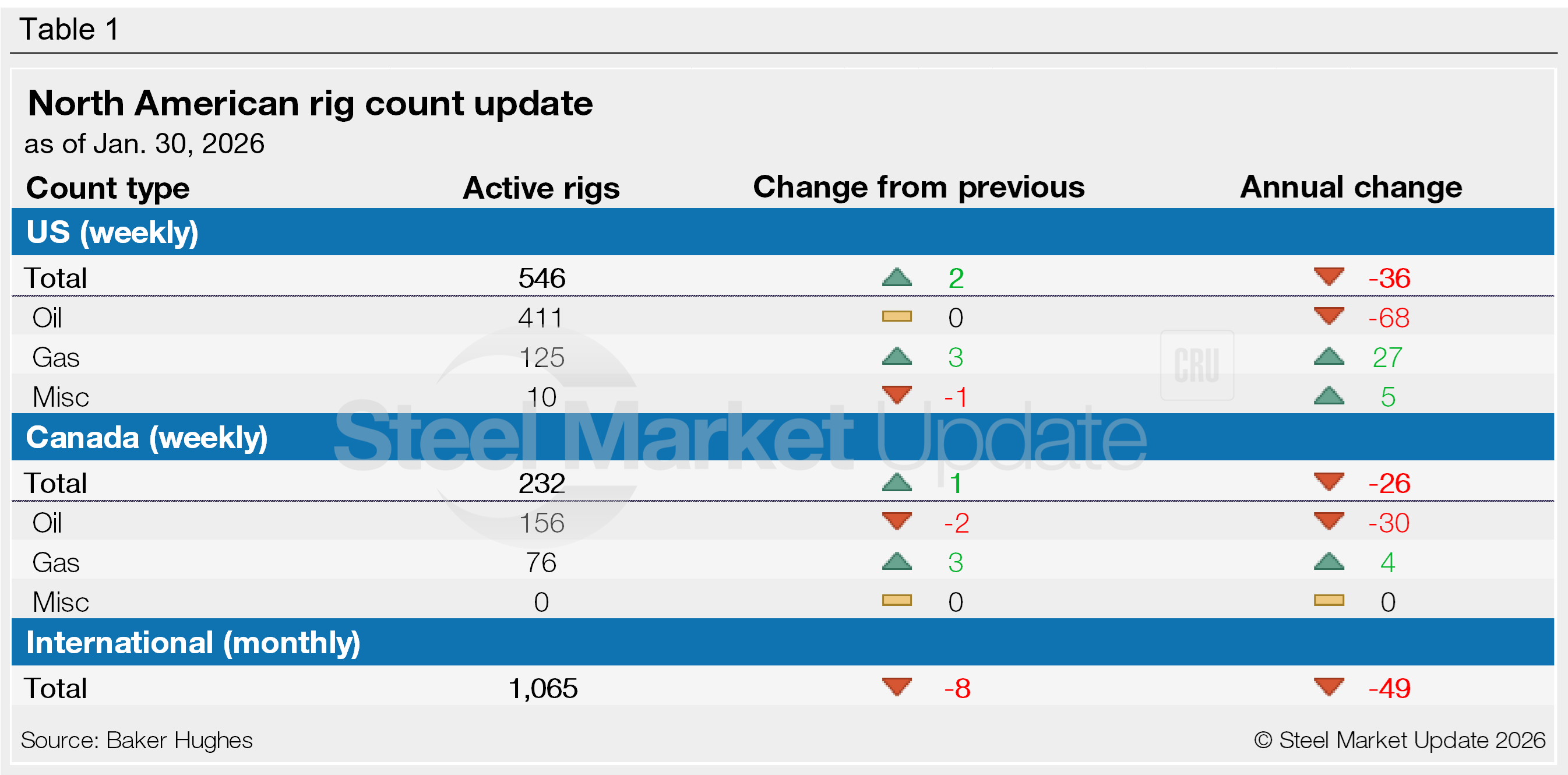The Baker Hughes rig count is significant for the steel industry because it is a leading indicator of oil country tubular goods (OCTG) demand, a key end market for steel sheet.