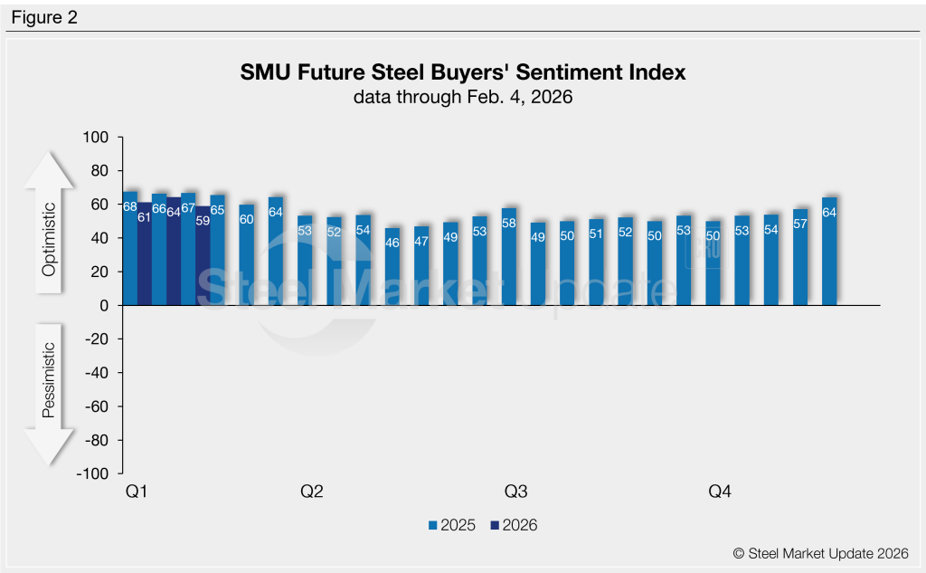 Both Sentiment Indices continue to reflect optimism among steel buyers about their businesses’ prospects. Since the start of this year, we have seen much higher buyer confidence compared to most of 2025.