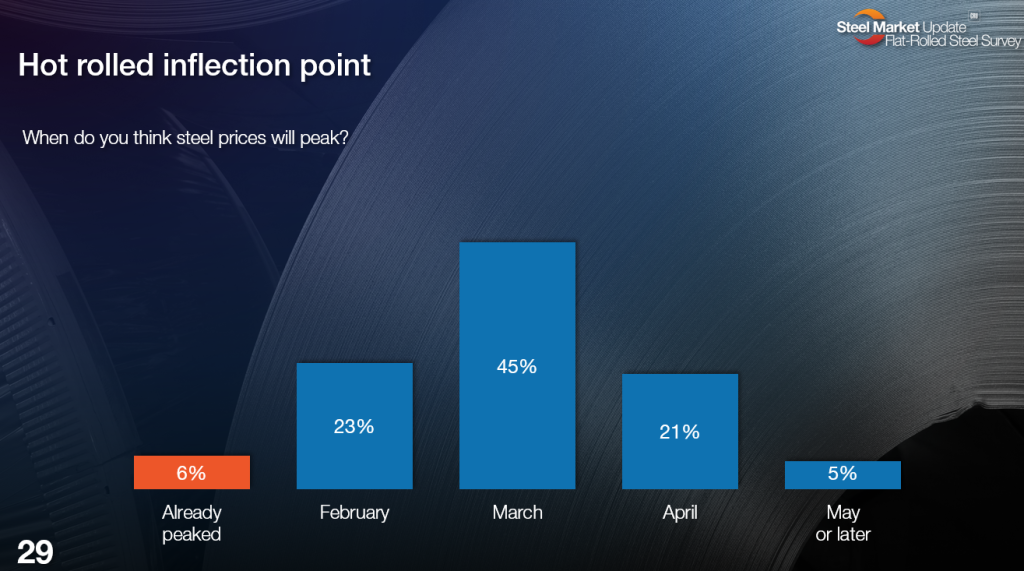 Let’s start with a question we typically focus on: when survey respondents think flat-rolled steel prices will peak.