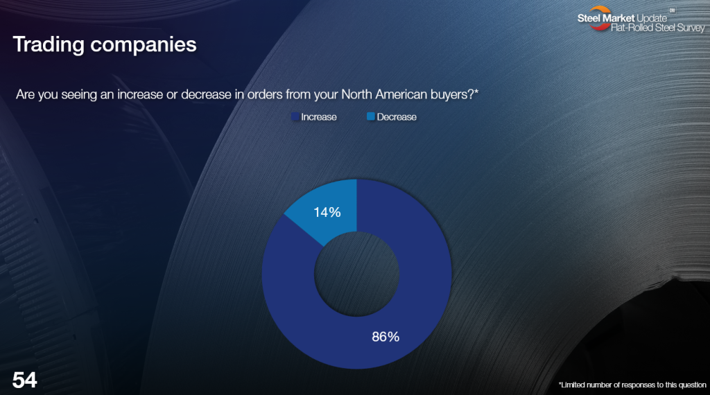 If you drill down into the results and comments, you’ll see that trader respondents are hardly predicting a flood of material into the US market. About 70% say they can offer competitive CR prices. For HR, that number is closer to 30%. And what they’re seeing is interest in certain specialty or higher-grade products.