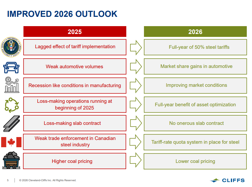 Cleveland-Cliffs cited multiple reasons for an improved outlook for 2026.