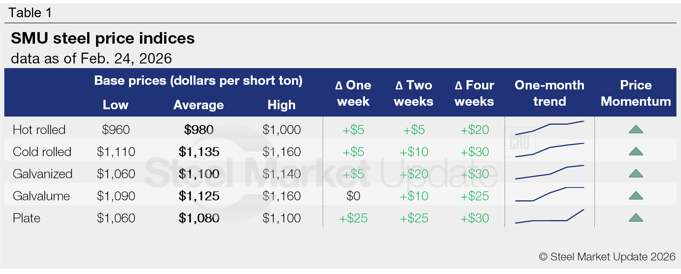 SMU Price Ranges: Sheet sees modest increase, plate jumps