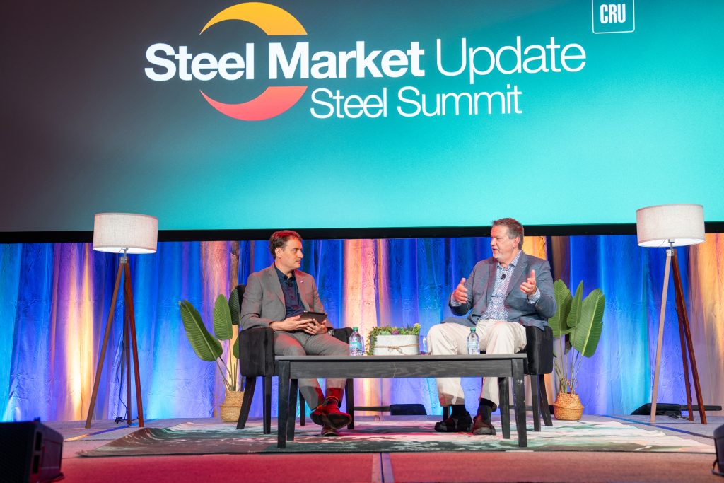 Nucor’s Dan Needham speaking with SMU Editor-in-Chief Michael Cowden during a fireside chat at the SMU Steel Summit in 2025.