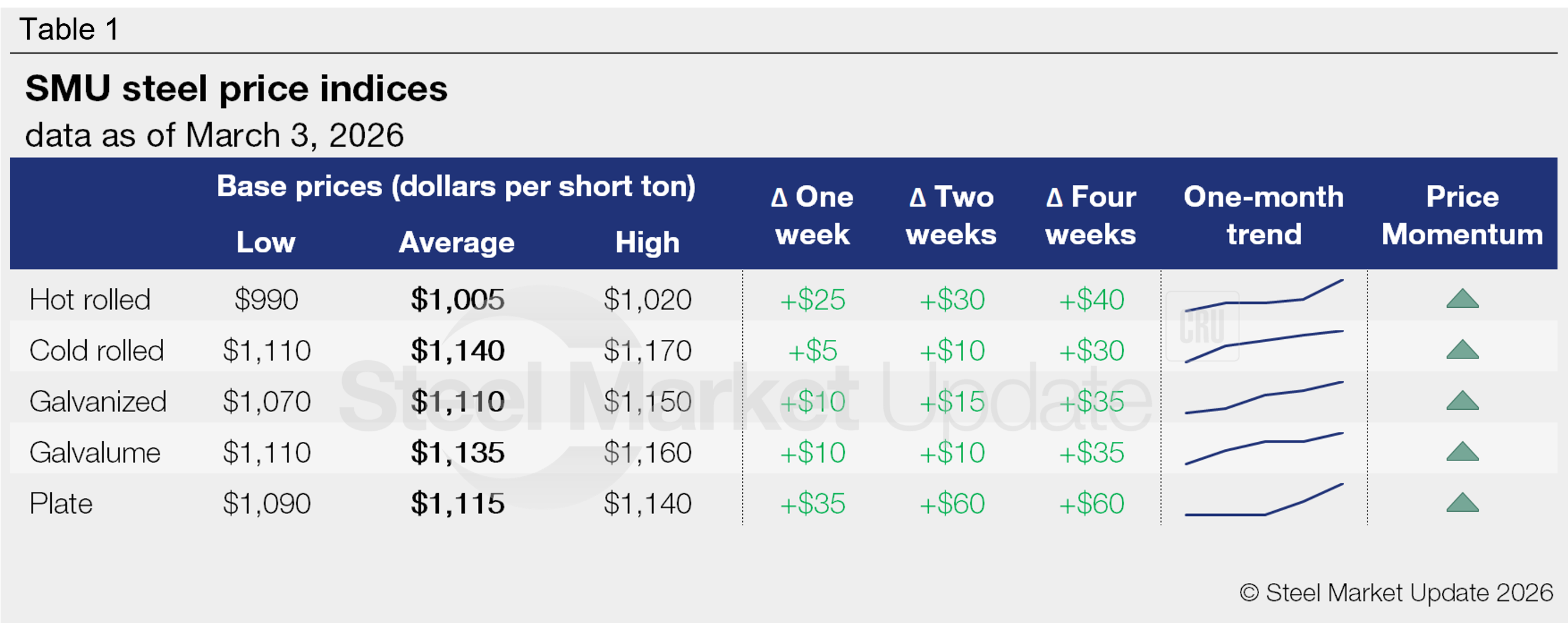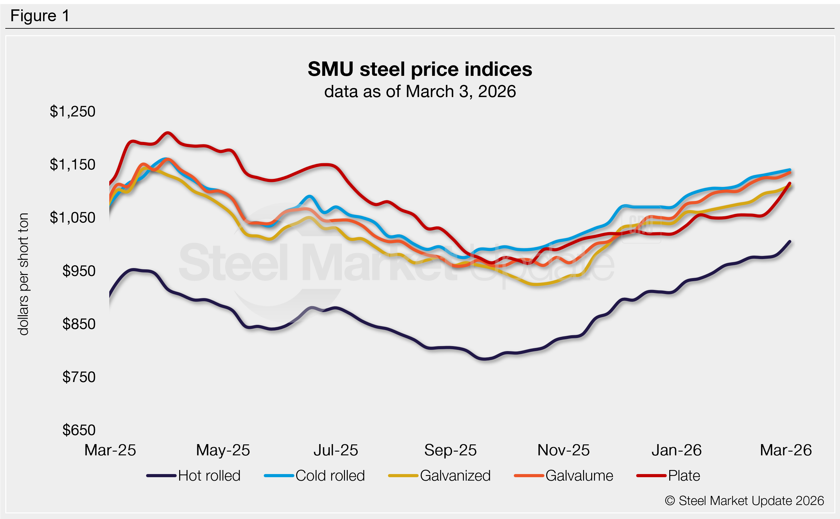 All five of SMU’s sheet and plate price indices rose to new multi-month highs this week.