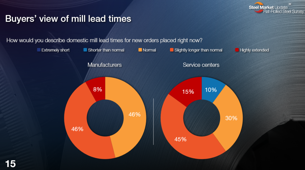 But lead times are already extended. And we’re seeing increasing numbers of steel buyers reporting lead times as longer than normal or even highly extended.