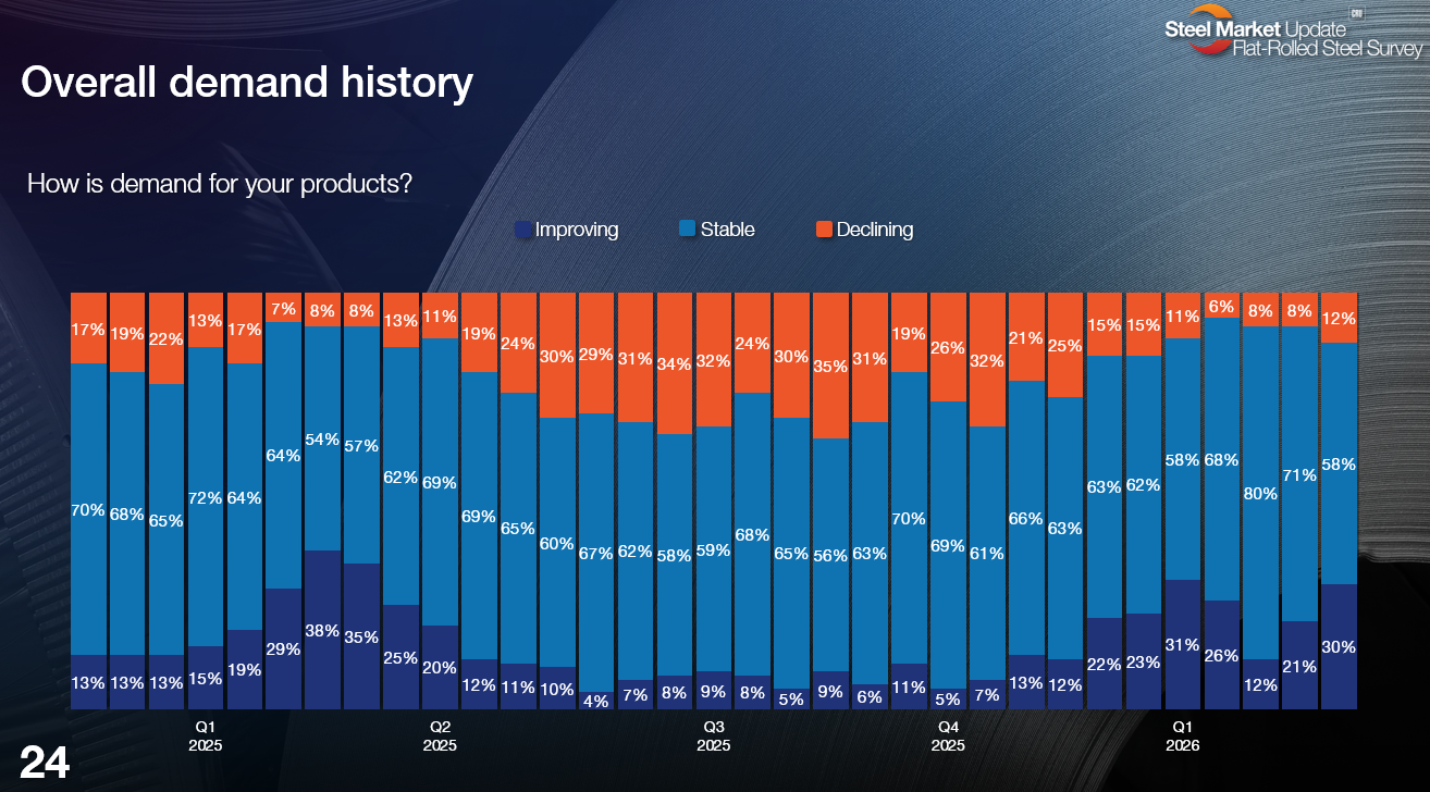 And, again, the big wildcard: The length of the Iran war and its impact on the market. Will the conflict lead to a pricing upcycle that lasts even longer and moves even higher than expected? Or could an overheated domestic market and widespread geopolitical uncertainty chill demand? Those questions are beyond the scope of our surveys right now. But we will be asking you more about the matter if the war continues to rage and should it have a more pronounced impact on domestic steel markets.