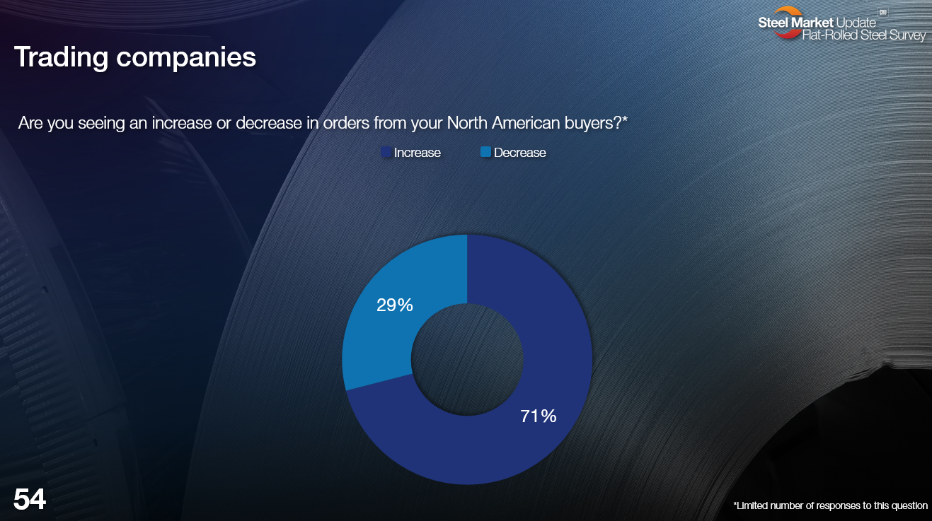 I say that because more than 70% of trading companies responding to our survey see increased demand from North American customers. Compare that to about 40% at the beginning of the year.