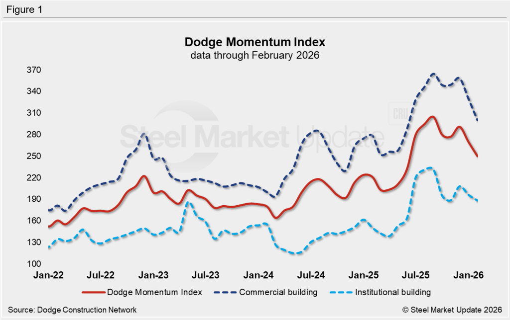 The Dodge Momentum Index (DMI) pulled back in February, as planning momentum normalized after a strong second half of 2025.