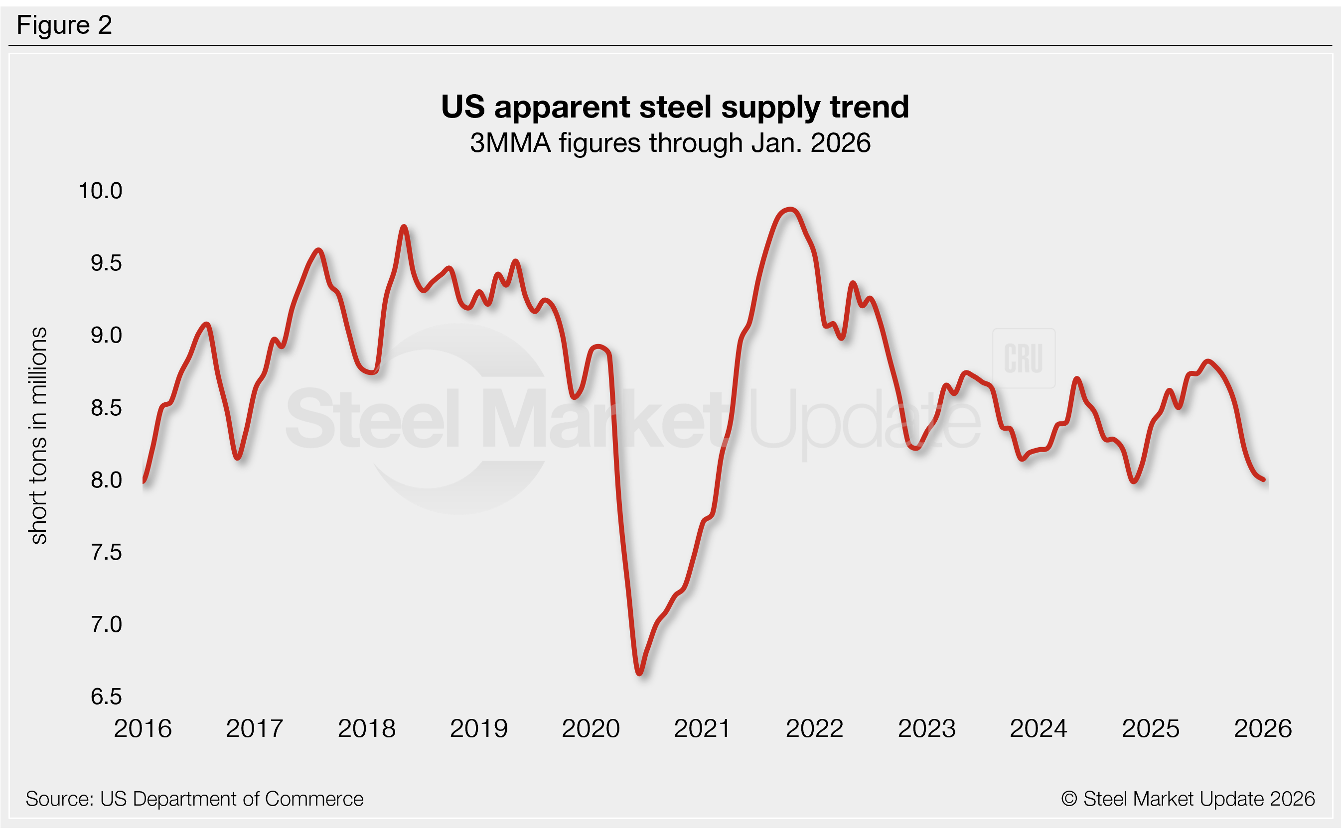 To see an interactive graphic of our apparent steel supply history, click here. If you need any assistance logging into or navigating the website, contact us at smu@crugroup.com.