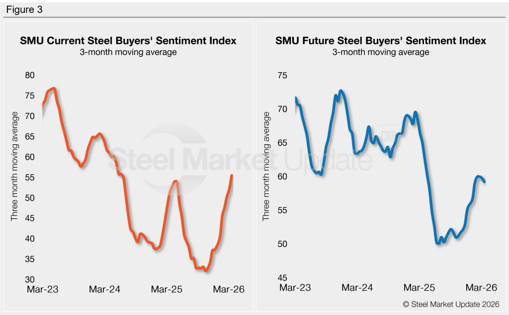Every other week, SMU polls thousands of steel industry executives asking how they rate their companies’ chances of success today and in three to six months. Responses are used to calculate our Current and Future Steel Buyers’ Sentiment Indices, metrics we have tracked since 2008.