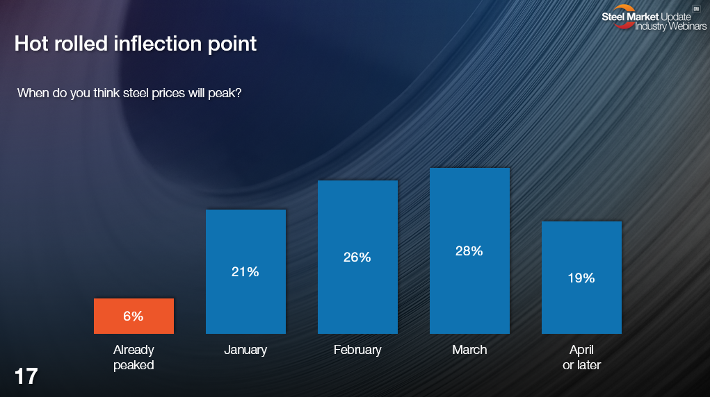 Meanwhile, the stronger for longer consensus continues to grow. Most people we survey now tell us they expect sheet prices to peak in April or May.