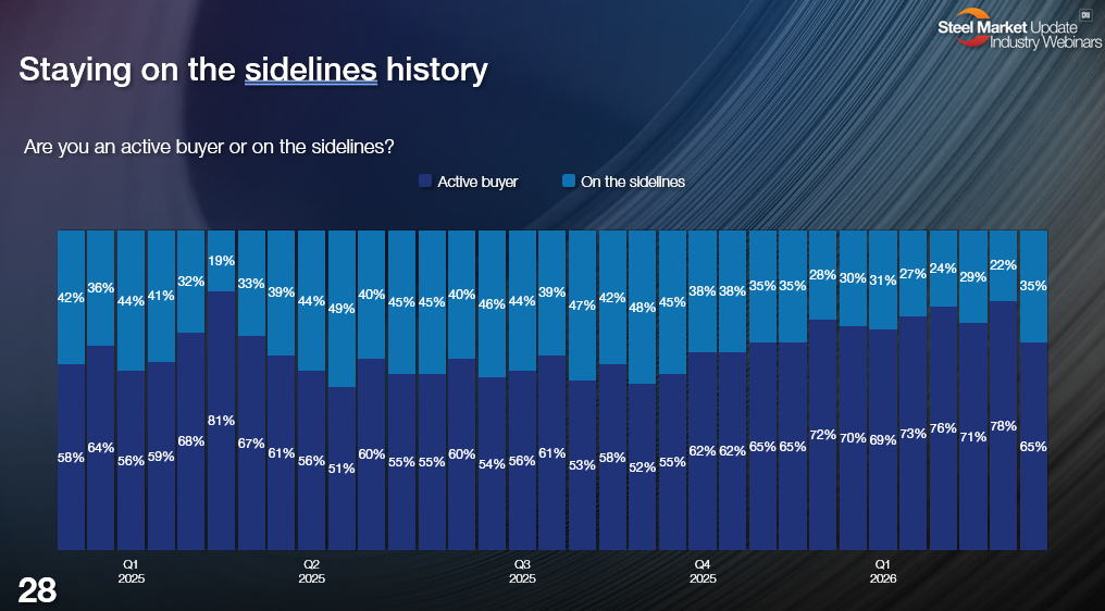 Rewind to the beginning of the month, and nearly 80% of respondents said they were active buyers. But more recently, that number has dropped to 65%.