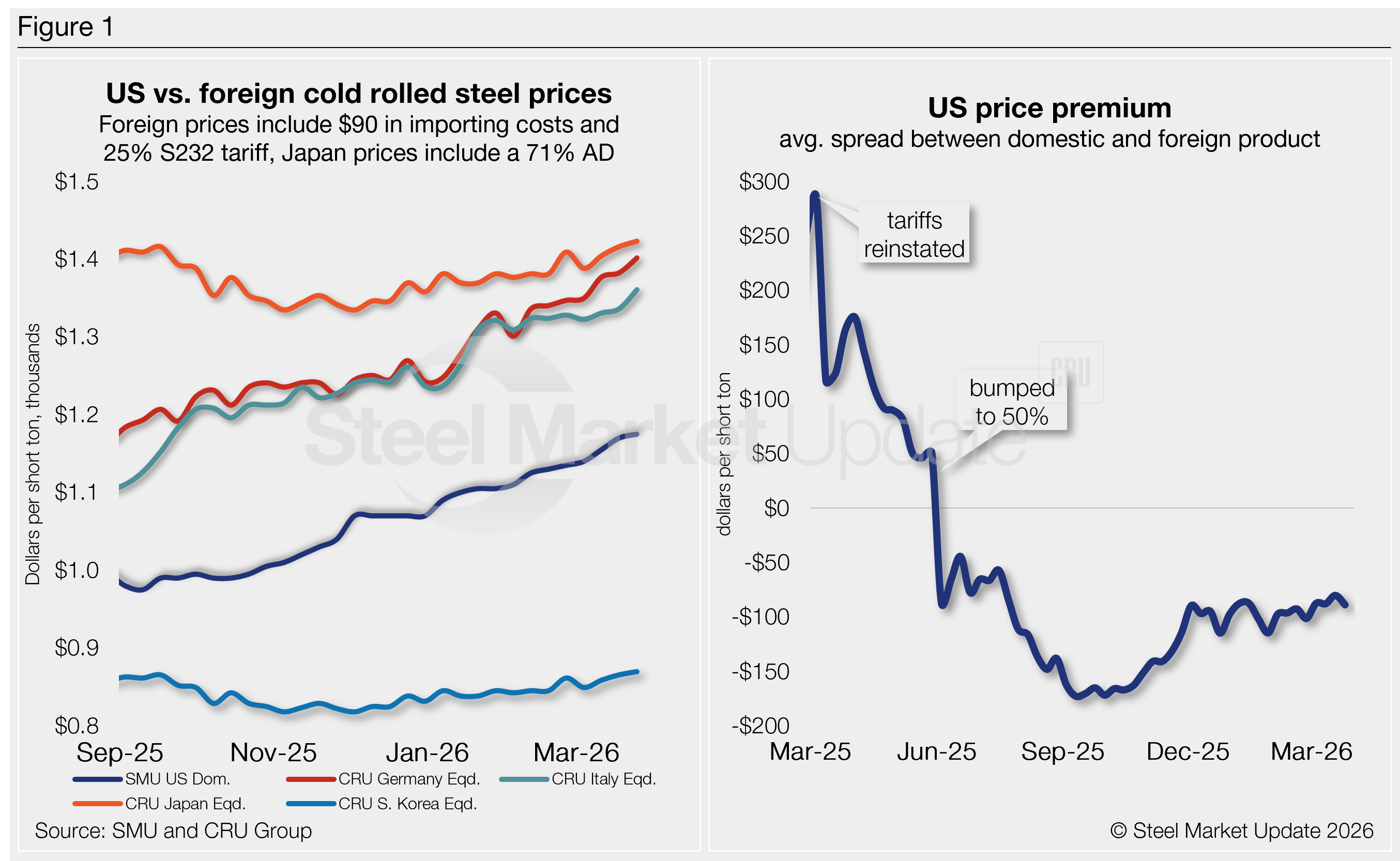 CR imports from Germany, Italy, and Japan on a landed basis remain much more expensive than domestic product. But South Korean imports remain competitive, in theory, even with the 50% Section 232 tariff.