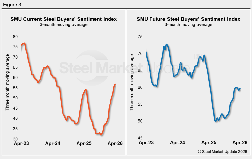 Every other week, SMU polls thousands of steel industry executives, asking how they rate their companies’ chances of success today and in three to six months. Responses are used to calculate our Current and Future Steel Buyers’ Sentiment Indices, metrics we have tracked since 2008.