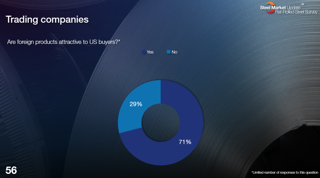 Most traders tell us that foreign steel is attractive to US buyers. That’s a sharp change from last year, when US prices were lower and 50% Section 232 tariffs were enough to effectively wall off much of the US market.