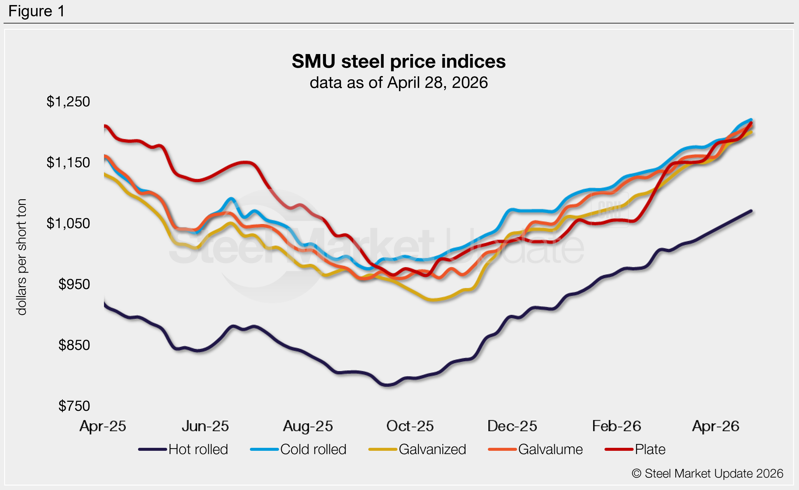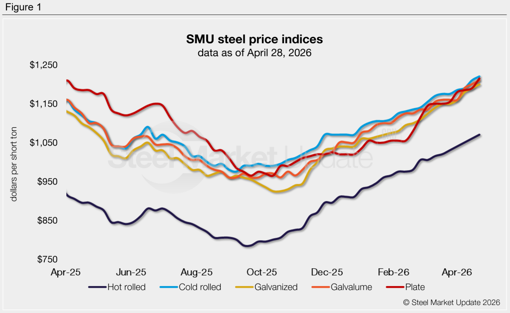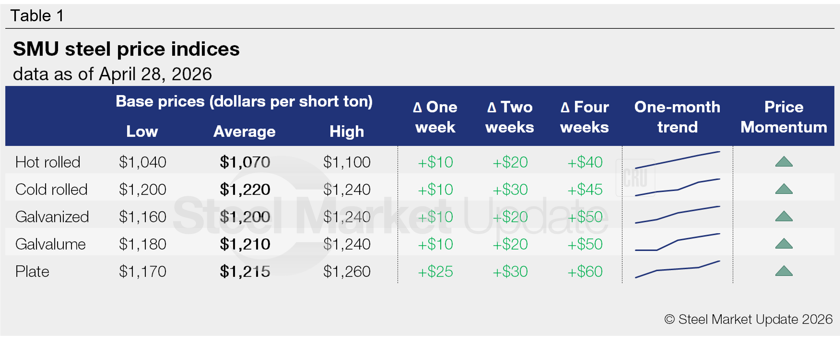 Hot-rolled coil is now up to $1,070 per st, the highest it has been since May 2023.